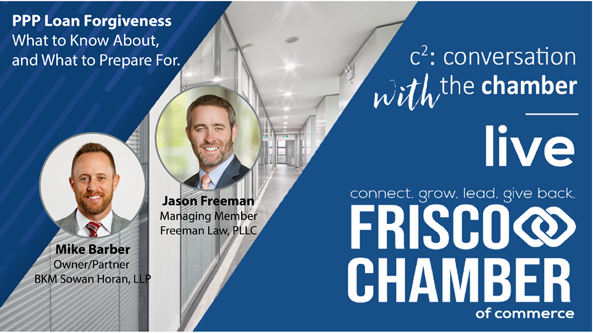 You’ve received a Paycheck Protection Program (PPP) loan and want to be sure that you follow all of the correct steps to have your loan forgiven. Join us for Conversation with the Chamber as we discuss PPP loan forgiveness with Mike Barber, Owner/Partner at BKM Sowan Horan, LLP, and Jason Freeman, Managing Member at Freeman Law, PLLC.