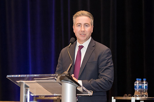 Mayor Jeff Cheney, City of Frisco, presented an overview of many projects and developments underway or currently planned for in Frisco, as well as reviewed Frisco City Council’s Top Ten Priorities. The city’s goal, as Mayor Cheney explained, is to increase the taxable property value of $35 billion to 50% commercial and 50% residential. Currently, commercial taxable value is at 30%, and the projects he outlined will help the city achieve this goal. Many of the project’s partners, such as The PGA, Omni Hotels, University of North Texas, and Frisco ISD were in attendance at the event.