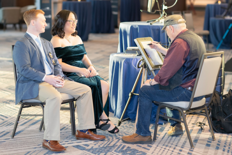 The night began with an exclusive VIP reception, where award nominees, past winners, and sponsors were recognized in style. This year, the Frisco Chamber received a record-breaking 160+ nominations—a testament to the incredible businesses and individuals shaping our community. Following the VIP Celebration Hour, sponsored by James and Patricia Collins, guests mingled over champagne, provided by Firefly Park, enjoyed live digital caricature artists, and took advantage of stunning photo opportunities, making it a glamorous prelude to the main event. The UNT Zebras Jazz Band added ambience to the evening.