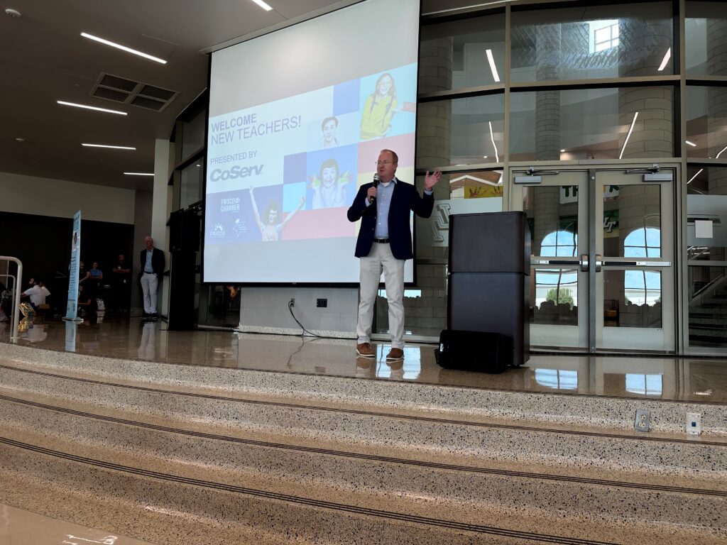 Adding to the day’s excitement, Mayor Cheney made a surprise appearance and spoke passionately about the partnership between the City of Frisco and Frisco ISD. Sharing a personal story about a teacher who significantly impacted his life, Cheney highlighted educators’ profound influence on shaping future leaders. He also emphasized that the high quality of Frisco ISD is a major draw for families and businesses moving to Frisco.